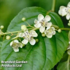 This beautiful sweet almond makes a highly ornamental tree bearing showy, light pink blossom in spring. Grafted on a semi-dwarfing ‘St Julian’ rootstock, Almond ‘Robijn’ will form a medium sized, spreading tree with excellent resistance to peach leaf curl. In areas with mild, frost free winters the soft shelled nuts will form from the third year after planting, and can be harvested from late august. Although perfectly hardy, almond trees require a frost free winter and a warm dry summer in order to produce a crop. As Almond ‘Robijn’ is grafted onto peach rootstock it is advised not to plant near peaches as hybridisation may occur resulting in bitter nuts. Almonds are self fertile but pollination is improved when more than one almond tree is grown. Height and spread: 3.5m (11′).