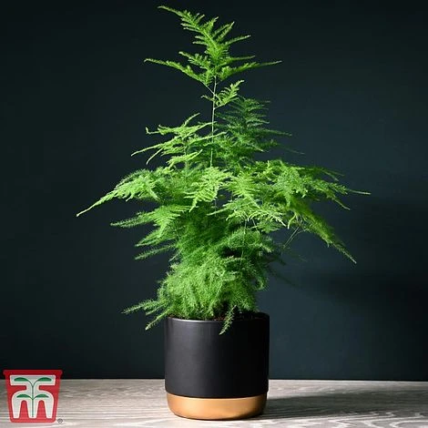 An attractive indoor fern with soft, feathery foliage, Asparagus setaceus sits beautifully within any contemporary or modern interior. The fresh green leaves are a welcome splash of natural colour which suits all styles. With its soft texture, this fern is a particularly lovely desk plant – the perfect living greenery for any well-lit home or office space. Height: 1m (39โ). Spread: 45cm (18โ).