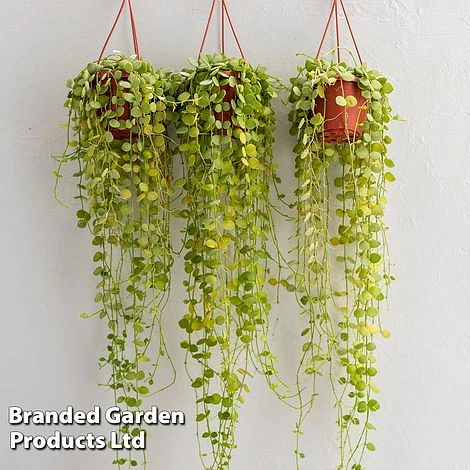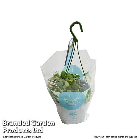 This pretty succulent has long, tumbling strands threaded with thick, disc-like foliage. Cascading from its hanging pot, Dischidia nummularia is perfect for creating that jungle feeling of being surrounded by verdant growth and maximises space, adding interest to dull corners. Height: 5cm (2″). Spread: 40cm (16in).