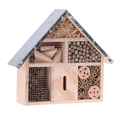 Made from Pine Wood (Pinus), Bambo (Bambusoideae), Pine Nut, Wire, Wood shavings, and Metal. This is an easy one to find space for. Simply use the wooden hooks to attach it to a tree, or green house, under the roof – or they make great summer house accessories. They look amazing, making excellent butterfly wall decor, and are a great eye-catching piece that also lets bugs take shelter from the weather. Quite a useful box that pairs great with your existing patio furniture and existing metal garden ornaments.