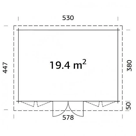 Lisa 19.4m² Log Cabin is a very attractive Double Glazed 44mm log cabin. The Palmako Lisa 19.4m/sq Log Cabin is light and airy due to the large fully glazed doors and large windows (all glass is DOUBLE GLAZED). With a Maximum Height of below 2.5m this lovely building provides ample space whilst also giving great headroom inside the Log Cabin.
