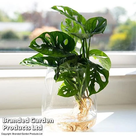 No messy soil is needed to grow this handsome Monstera adansonii. Just pop the plant into the beautiful glass vase, top up with rainwater and watch the roots grow. This unusual hydroponic growing method is becoming the latest houseplant trend and makes for a fascinating and unusual centrepiece. A relative of the familiar Swiss Cheese Plant, this smaller Monstera adansonii has handsome, heart-shaped leaves punctured with oval-shaped holes.