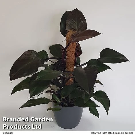 A glamorous foliage plant but one that is dead-easy to look after and great for beginners. Plain green Philodendrons have always been deservedly popular, but Philodendron ‘New Red’ has transformed this humble houseplant into a stunner! Heart-shaped leaves with maroon undersides float on wine-red stems. Possibly one of the easiest houseplants to grow, Phildodendron is a fast-growing, climbing vine that offers plenty of scope for creative displays as it can be trained to tumble from shelving, cascade from a hanging pot, or climbed up a pole or wires. It is also a great air-purifying plant, filtering out toxins to keep your home or office fresh. Maximum height and spread: 1.2m (4ft).
