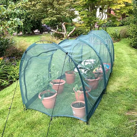 Ultra high quality advanced crop protection for serious gardeners. The Pro Gro solves the problems of flimsy ‘hoop and wire’ tunnels, which can rust and sag over time, potentially damaging the plants inside. Pro Gro tunnels feature flexible carbon fibre rods that maintain shape and tension over time, with ballast pockets and guy ropes for wind stability. The 4mm mesh softy-touch netting guards against a range of pests from birds and squirrels through to cabbage whites and other large insects. They assemble in minutes with no tools needed and pack down into a small bag for easy storage out of season. Large zipped doors allow easy access to crops and help regulate heat, humidity and airflow for optimum growing conditions. An ideal growing environment for a wide range of crops including strawberries, salads, sprouts, cabbages, cauliflowers, chillies and small tomato plants. Use over raised beds and grow patches in both garden and allotment. Comes with securing ground pegs.