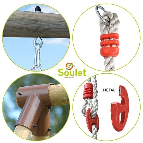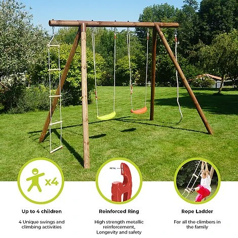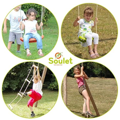 The ideal garden accessory for children to improve their physical agility is the Soulet Ernest garden swing set. They are encouraged to ascend using the rope and built-in ladder, which helps them build strength and stamina. Two straightforward swings are also a part of this gantry for a taste of traditional childhood joy. Swing securely and happily away with the Ernest swing set.