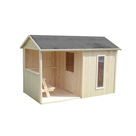 The Jazz house’s contemporary style, plush interior, and exterior features make it a popular choice amongst children of all ages. It has an outdoor terrace that gives kids a great place to play games or hang out with pals while enjoying outdoor activities. No matter how many friends drop by, the table-bench is great for any kind of gathering, and the large counter makes it ideal for kid’s parties! Additionally, it provides a secure, enjoyable, and comfortable atmosphere for up to four kids at once.