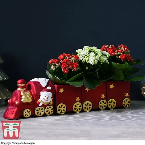 Join the Polar Express with this fun and festive ceramic train! Driven by a jolly snowman, each train pulls 3 colourful carriages. This adorable planter contains your choice of either a bright mix of Kalanchoe plants or 3 fragrant Hyacinth bulbs. Perfect for chugging along a windowsill, or as a Christmas table centrepiece! Kalanchoe is the ultimate easy-care houseplant with a generous display of starry flowers. If traditional Christmas bulbs are more to your liking then opt for a dazzling mix of Hyacinths!