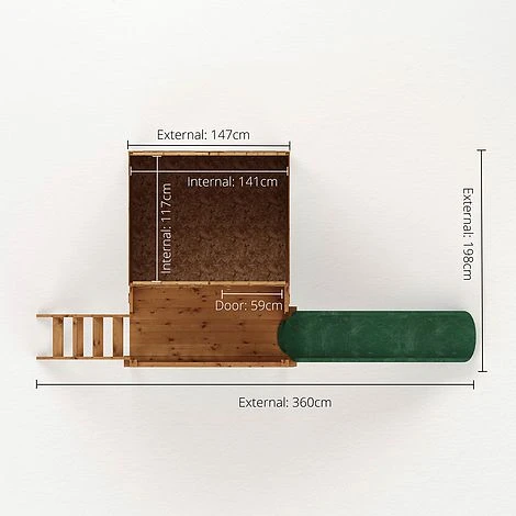 This playhouse with tower and slide, is both a charming and traditional playhouse with a tower and slide for added adventure. Somewhere your children can play and explore their imagination while spending time in the garden. Featuring a minimum 12mm finger gap around the door, rounded timbers and ventilation holes, our playhouses are EN71 certified and UKCA Marked, to ensure they are safe for your children to play with every day. Made in the UK, using ethically sourced, FSC? certified timber, this playhouse is constructed using quality materials to ensure a strong and weatherproof build. The walls of this playhouse are constructed using premium horizontal interlocking tongue and groove boards with a shiplap profile. The shiplap profile includes a protective and aesthetically pleasing lip to create a strong, weatherproof panel. Complete with thick wooden framing to support the cladding internally, this building offers a rigid and long-lasting structure. Solid sheet board is used to form the floor and roof, a durable material that is made up of several layers of tightly compacted oriented strands. Solid sheet board is perfect for everyday general use. Robust roofing felt, fixtures and fittings are all supplied as standard, alongside our detailed instructions and our manufacturers recommendations, to ensure a simple and stress free assembly process. All of our buildings come with an Anti-rot guarantee, to ensure your garden building looks great and lasts the test of time, this building in particular comes with a conditional 10 year Anti-rot guarantee as well as a 12 month manufacturers warranty. Annual re-treatment is required to maintain your building and the Anti-rot guarantee. Suitable for children aged 36 months