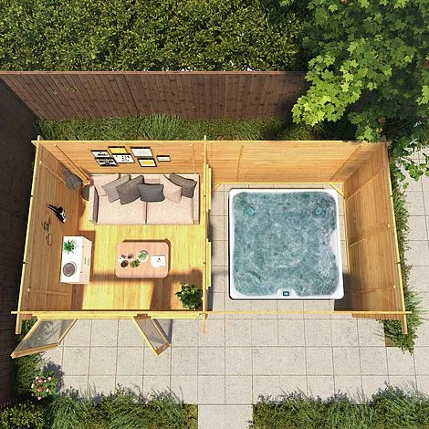 The Laurel Log Cabin has a spacious and open interior, ideal for those looking for an extension of their home. The combination of an indoor and outdoor area mean this cabin is the ultimate, multi-functional garden cabin that can be enjoyed all year round. How about turning the inside into your very own gin bar, with a spa pool to compliment in the sheltered area you would undoubtedly be the envy of all your friends.
